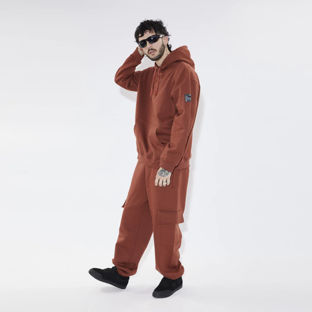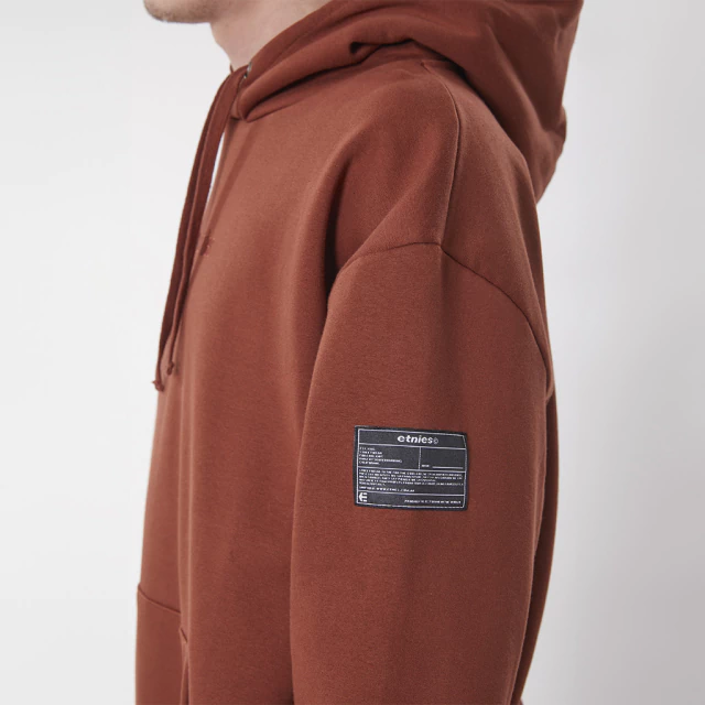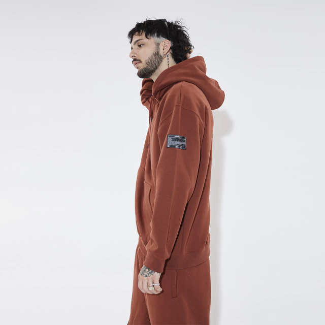 Buzo de frisa con capucha, con bordado en delantero, cordon y grifa de manga lateral. Fit Regular.
