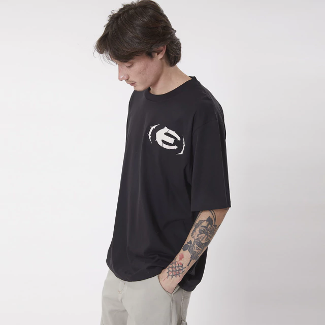 Remera de jersey, cuello en rib con estampa en delantero y espalda, etiqueta en espalda. FIT OVERSIZE BOXY