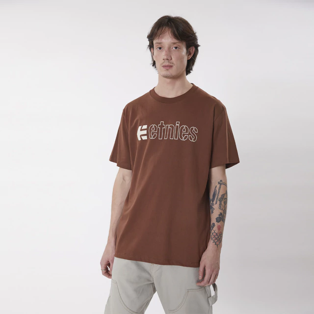 Remera de Jersey, y cuello en rib con estampa en delantero y grifa de marca.