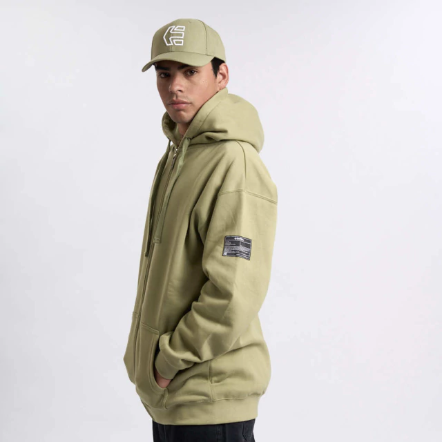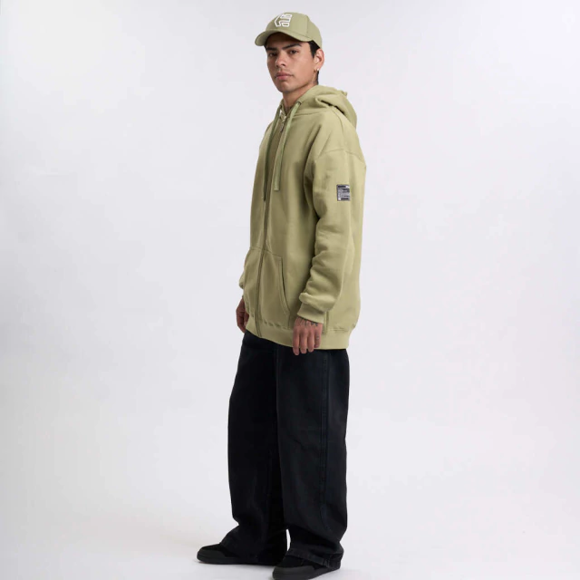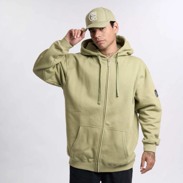 Buzo de frisa con bordado en capucha, cierre, cordon y grifa de manga lateral. Fit regular.