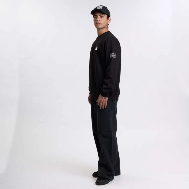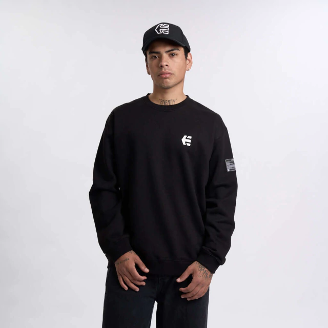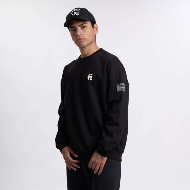 Buzo crew de friza con cuello redondo y puños en rib, con estampa en delantero y grifa en manga. fit regular.