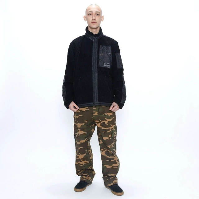 Campera de doble sherpa, con recortes en sire a tono, bolsillos en laterales, cuello alto, cierres negros, etiqueta de marca. Fit oversize.